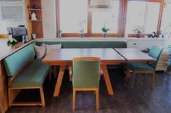Zusätzlich zu unseren Küchen bieten wir Ihnen auch Essplatzkonzepte an. Ein Ort der Begegnung, ein Ort zum Genießen. Schwingende Sitzflächen, elegante Stühle, großzügige Tische oder eine gemütliche Eckbank laden zum Verweilen ein.